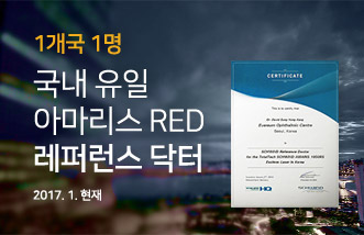 그동안 눈동자의 떨림이 심한 안구진탕 환자의 경우 정확한 위치에 레이저를 조사하는데 어려움이 있어 라식이나 라섹과 같은 시력교정술의 기회조차 얻기 힘든 경우가 많았으나 최신 아마리스 레드 1050RS는 독보적인 7차원 안구추적 시스템과 1050hz의 레이저 조사속도로 추적 즉시 레이저 조사가 가능한 1대 1 시력교정술이 가능해졌습니다.