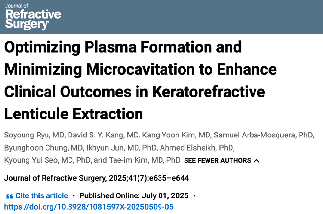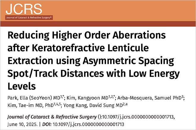 스마일 ‘최우수연구(BEST PAPER)’ 2년 연속◦ Effect of Using a Novel Optical Zone Calculation Formula on Corneal Higher-Order Aberrations after Keratorefractive Lenticule Extraction.