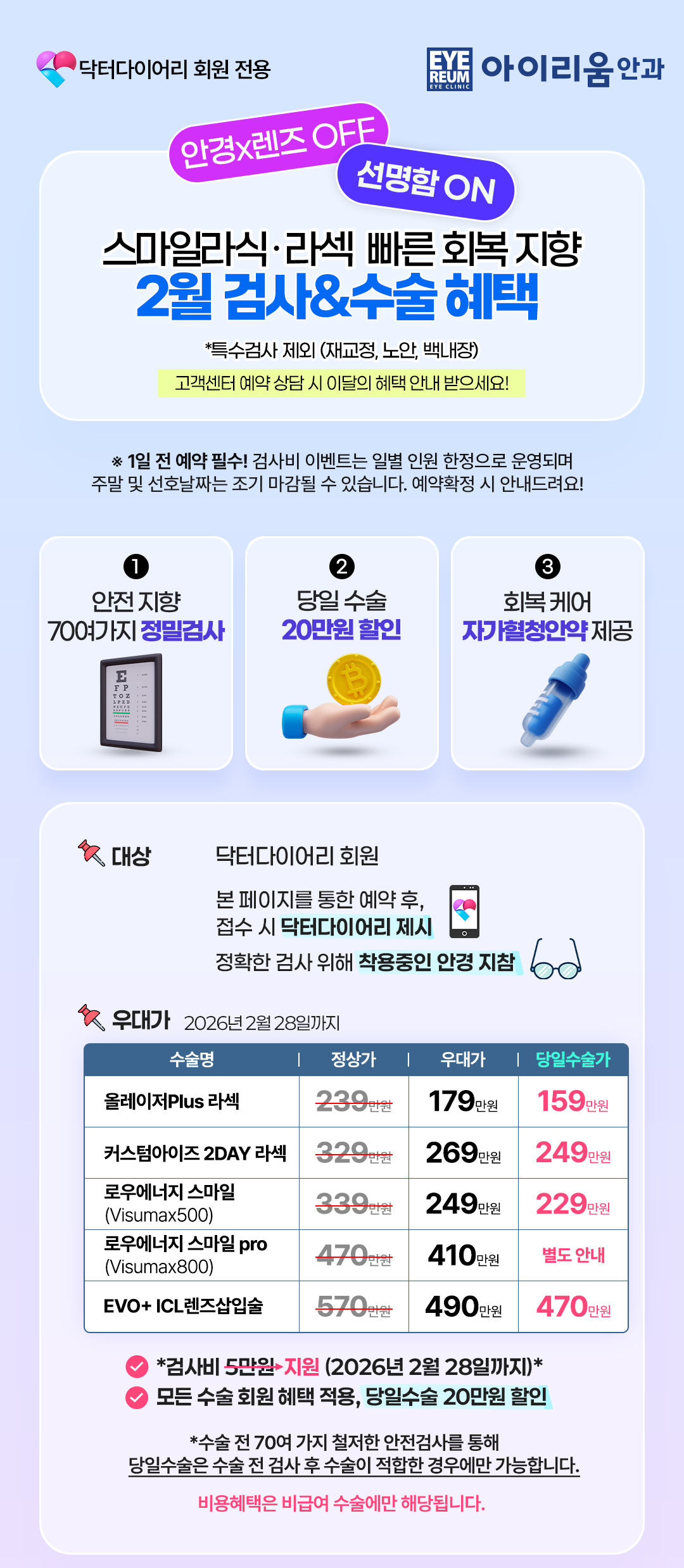 닥터다이어리 전용_ 2월 라식라섹 검사비FREE_당일수술 20만원 혜택