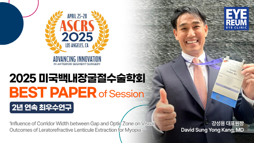 2025ASCRS 최우수연구(BEST PAPER) 2년 연속 수상(스마일라식, 백내장 등)
