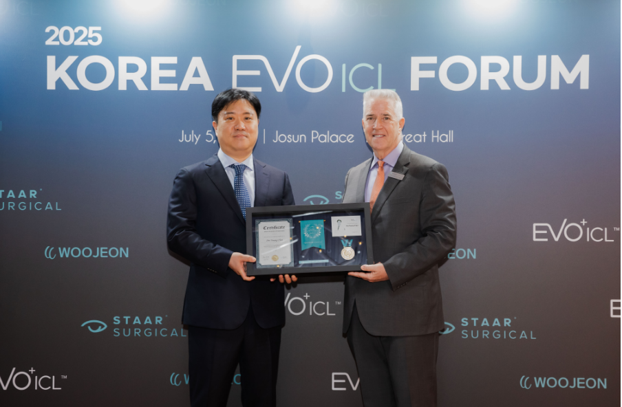 ICL 렌즈의 임상 성과 및 학술적 기여를 인정받아, 미국 STAAR Surgical의 CMO인 Dr. Scott Barnes로부터 ‘ICL Expert Instructor’ 상패를 수여 받았습니다.