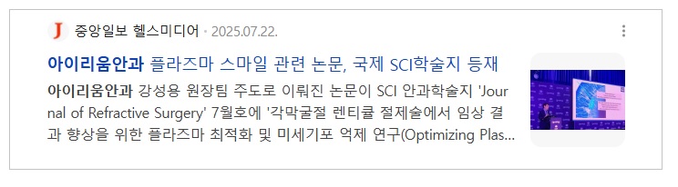 해당 연구는 올해 7월 SCI 안과학술지 Journal of Refractive Surgery에 등재돼