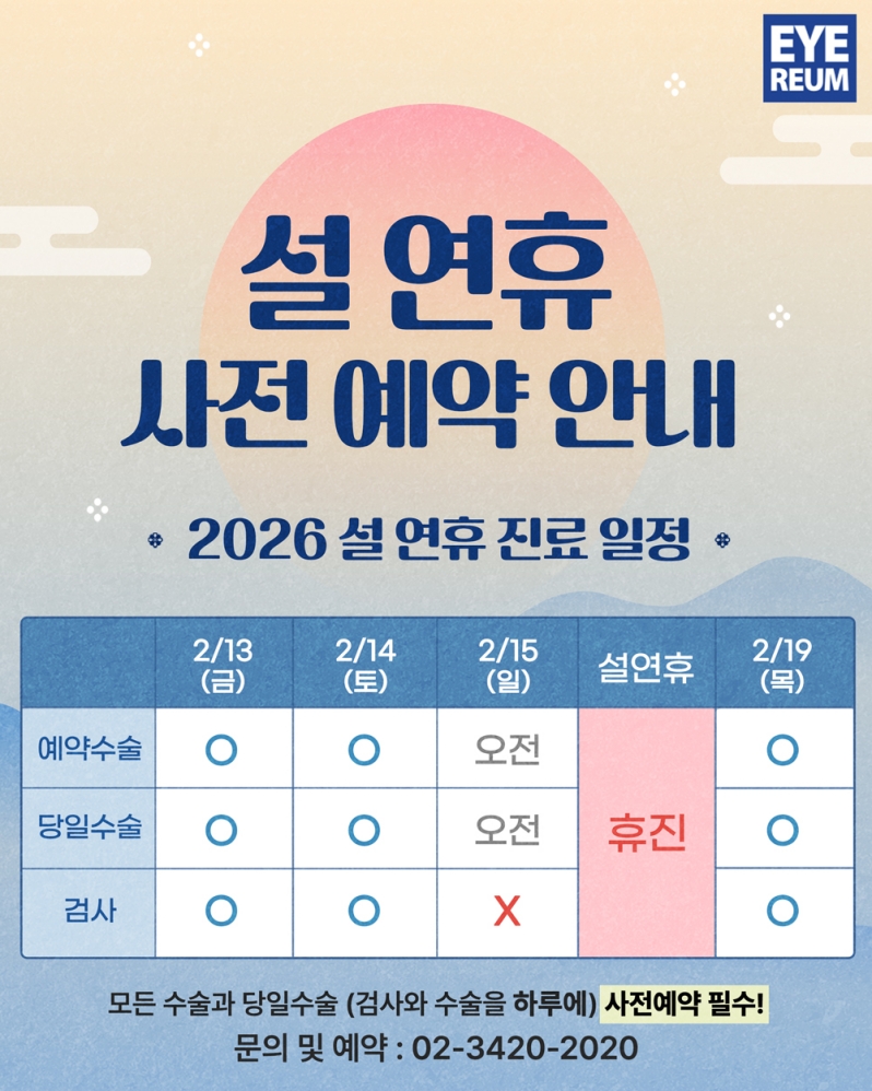 2026 설연휴 진료일정 안내(시력교정술 사전예약)