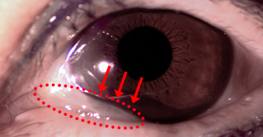 결막이완증은 결막 부분이 탄력을 잃고 처지는 질환으로, 주름이 생기거나 눈동자와 눈꺼풀 사이가 부운 듯이 튀어나와 눈꺼풀을 덮게 됩니다.