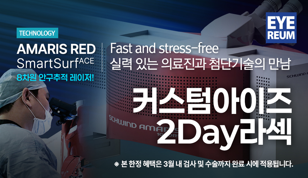 주시안은 스마일, 라식으로 정시로 교정, 비주시안은 ‘프레즈비맥스®’ 수술로 다초점 각막 표면을 만들어 각막 중심부는 근거리를, 각막 주변부는 원거리를 보도록 교정합니다.
