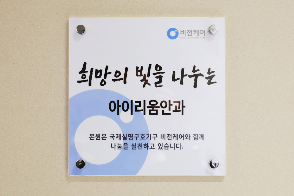 비전케어 '희망나눔안과', 아이리움안과가 희망의 빛을 나눕니다.