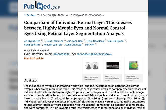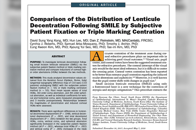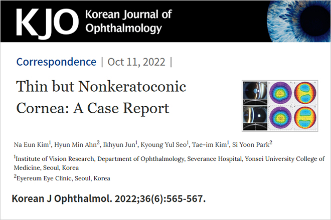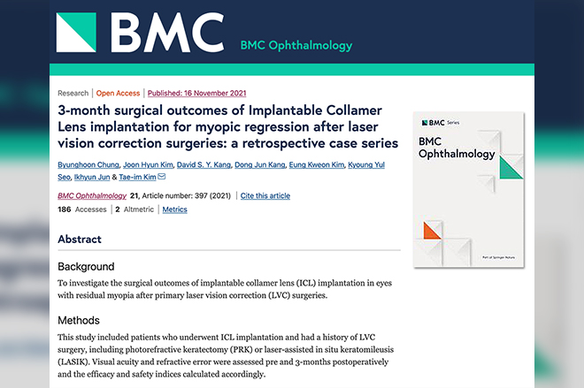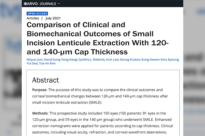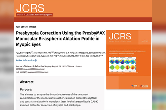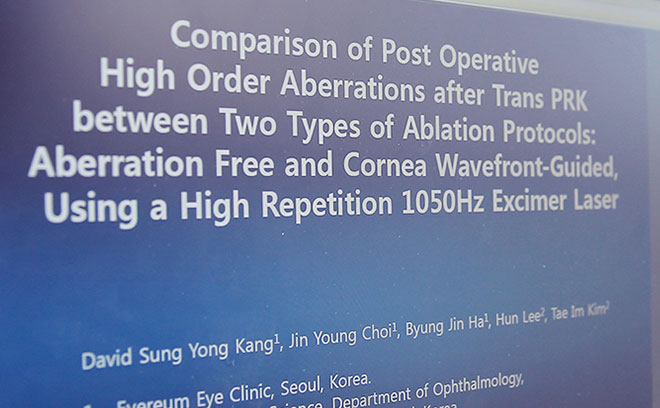스마일 ‘최우수연구(BEST PAPER)’ 2년 연속◦ Effect of Using a Novel Optical Zone Calculation Formula on Corneal Higher-Order Aberrations after Keratorefractive Lenticule Extraction.