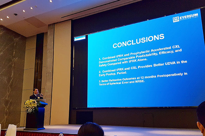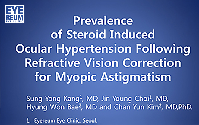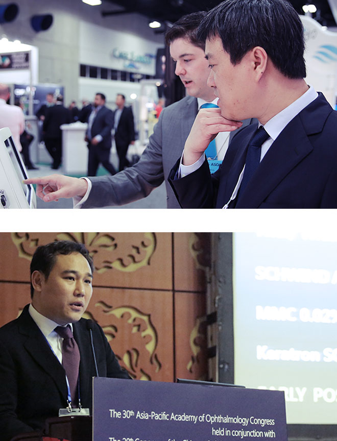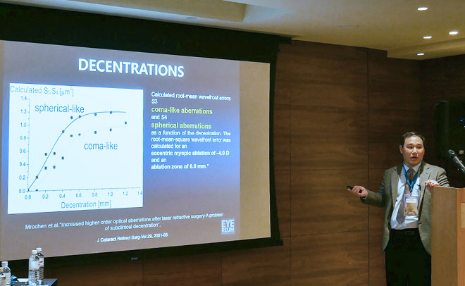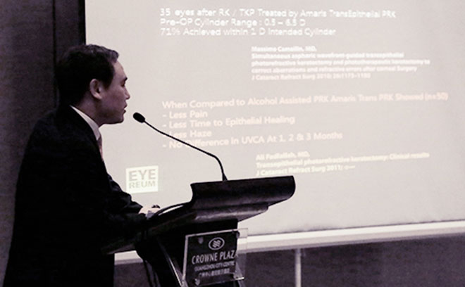 - 상해 '중국 시과학 학회 제 13회 심포지엄'1세대 라식수술 후 발생한 불규칙한 각막 교정, 커스텀아이즈(CustomEyes) 수술을 이용한 각막 정상화 후 백내장 수술방법
