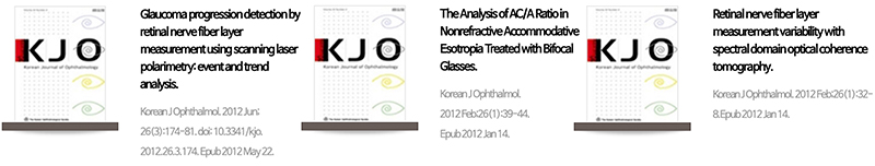 2009년 대한안과학회 발표Comparison of Retinal Nerve Fiber Layer Thickness Measurements Calculated by the Optic Nerve Head Map(NHM4) and RNFL 3.45 Modes of Spectral domain Optical Coherence Tomography (OCT) (RTVue-100).