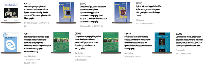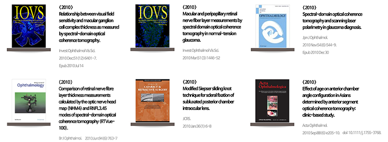 2009년 대한안과학회 발표Detection of Glaucoma by Spectral Domain-Scanning Laser Ophthalmoscopy/Optical Coherence Tomography (SD-SLO/OCT) and Time Domain Optical Coherence Tomography.