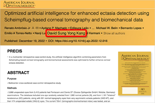 레이저 시력교정술 후 각막확장증 진단하는 새로운 생체역학력 지수(Biomechanical Index)