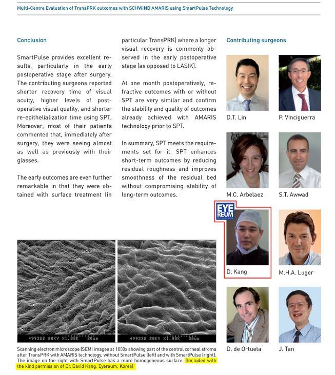그리고 슈빈트가 전 세계 아마리스 전문 의사들이 모인 자리에서 강성용 원장이 아마리스 레드 스마트펄스의 수술 성과를 발표하는 연사로 초청되어 라식의 대가 '존 마샬 박사'와 함께 강연을 진행합니다.