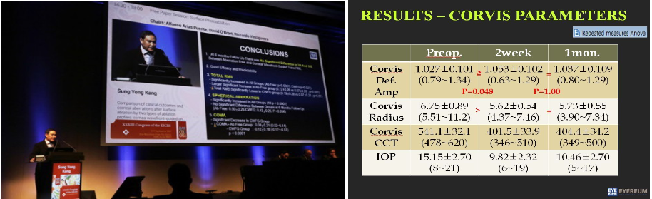또한 아이리움안과의 이번 발표를 통해 각막의 강성도(Stiffness)가 수술 후에도 수술 전과 동일하게 유지되는 효과를 설명했는데요