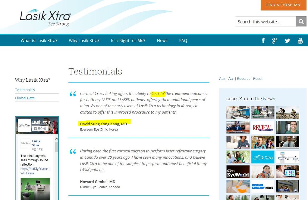 강성용 원장은 아베드로 공식 홈페이지(www.lasikxtra.com)에서 엑스트라 수술의 ‘Lock-in’ 효과에 대해 설명했습니다.