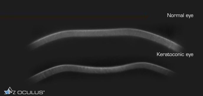 원추각막과 같이 각막이 약한 사람은 정상인보다 더 많이 출렁이는 모습을 볼 수 있습니다.