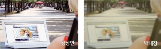 ▶ 색채의 변화 : 갈색과 황색의 색채가 미세하게 더해지면서 색깔이 바래보이는 증상이 있습니다. 심해지면 파랑, 보라 구분이 어려워집니다.
