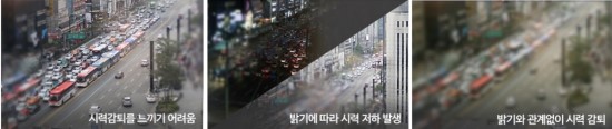 ▶ 눈부심 : 햇빛에 상당히 예민해 눈이 부십니다. 야간 운전 시 헤드라이트와 길거리 불빛에 대한 불편이 큽니다.