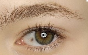 눈 속의 흰자위(결막)에 피부에서처럼 진하거나 연한 갈색의 점이 한쪽 눈에 주로