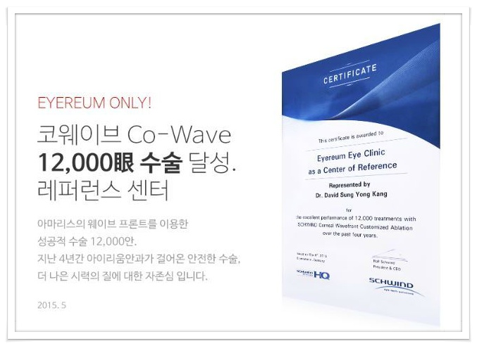 그리고 지난 2014년 4월에는 코웨이브를 이용한 환자 맞춤형 수술 5000안을 달성하면서