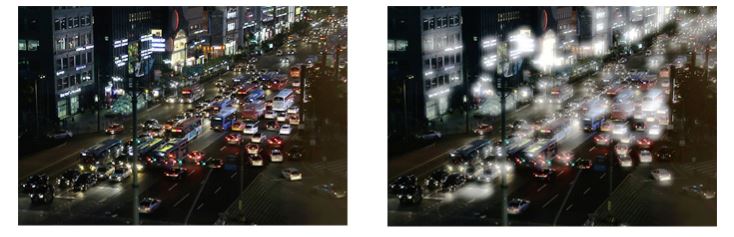 평소보다 많은 빛이 들어오면 시력교정수술 후 변형된 각막에 의해 빛 번짐 현상이 발생할 수 있습니다.