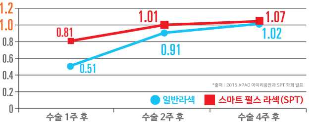 라섹 수술 2주 후 평균 1.0 달성 - 수술 후 매끈한 각막절제면, 빠른 회복을 가능케 하는 SPT 공동개발과 각막지형 맞춤수술