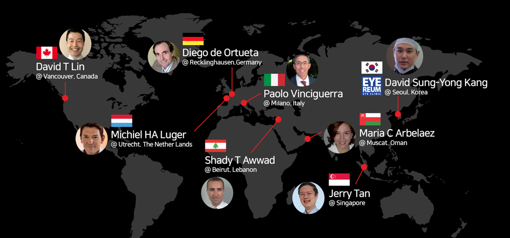 코르비스ST 각막 강성도 검사와 각막 지형도 검사의 결합 분석 프로그램은 아이리움안과의 강성용 원장님과 각막 생체 역학(Corneal Biomechanics) 분야의 권위자 Cynthia Roberts 박사, Renato Ambrosio 박사, Paolo Vinciguerra 교수와 함께 공동개발을 진행했습니다.