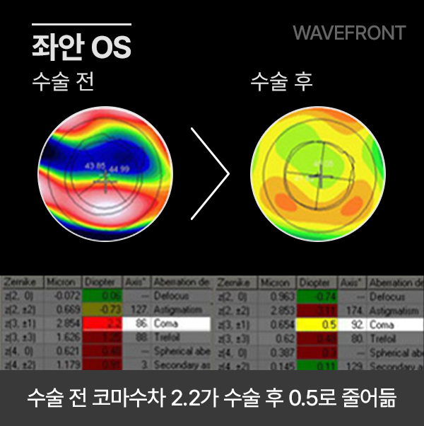 수술 시 빛 번짐 고려하지 않은 저위수차 교정사례가 많습니다.