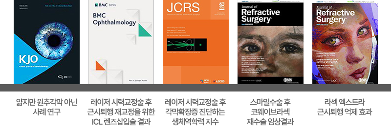 아이리움안과 강성용 원장은 독일의 Theo Seiler 박사, 영국의 Bruce Allan, 싱가포르 Jerry Tan, 이탈리아 Paolo Vinciguerra 등 세계적 권위자들과 아마리스 심포지엄, CXL학회, ASCRS, ESCRS 등 세계적인 학회 발표와 논문 발표로 부작용 치료와 예방법에 대해 입증하고 있습니다.