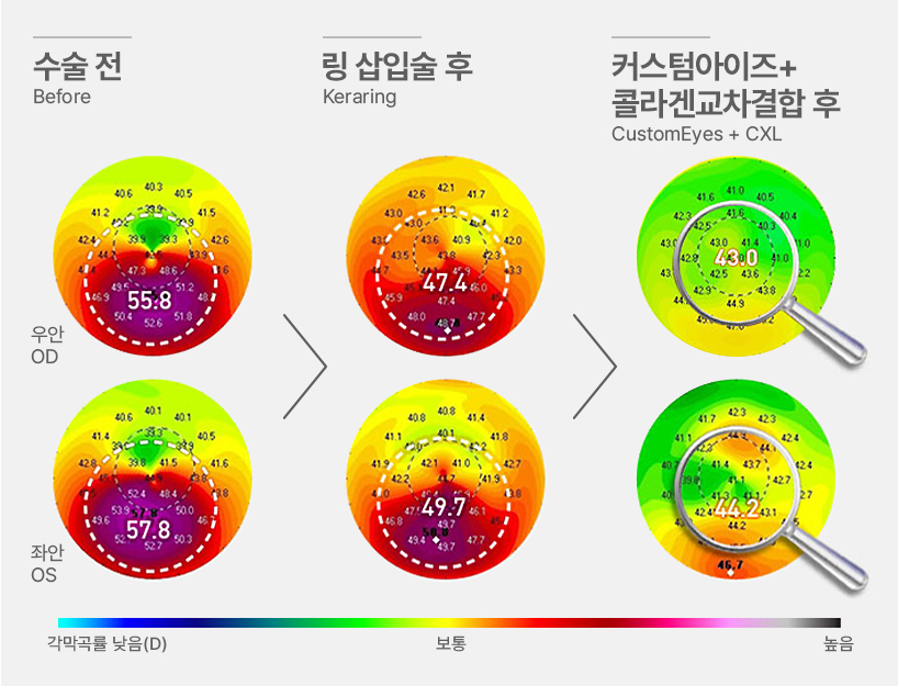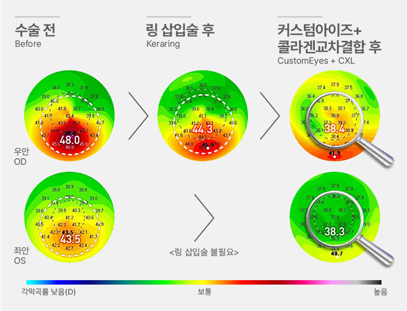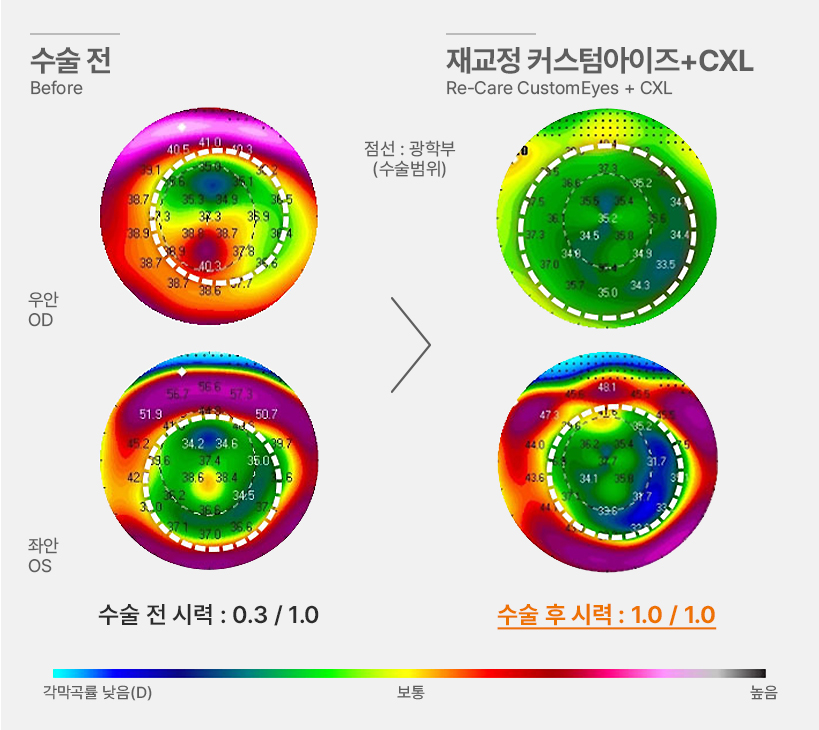 재수술 가능한 400㎛, 각막 상피 두께 검사로 잠재된 원추각막을 진단합니다.