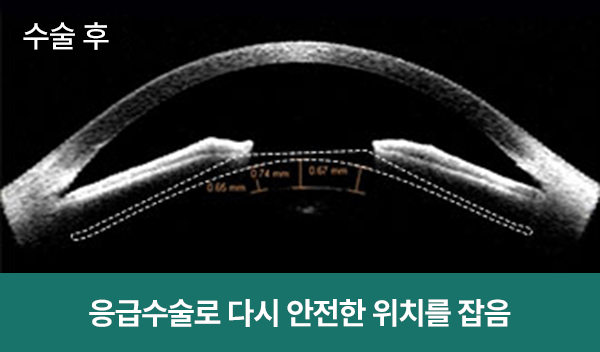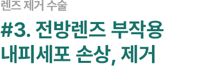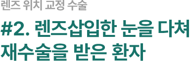 ▲ 렌즈삽입술 재수술이 필요한 경우: 수술 후 불가피한 이유로 안내렌즈를 교체 또는 제거해야 하는 경우 렌즈 제거술을 시행합니다.
