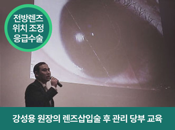 전방렌즈삽입수술 후 지속적으로 외부 충격이 가해졌을 경우 내피세포가 급격하게 감소할 가능성이 있으므로 눈을 비비는 행동은 꼭 피해주셔야 하며 수술 후 정기적인 검진을 통해 내피세포 감소 여부와 렌즈의 올바른 위치 등을 확인하는 것이 중요합니다.