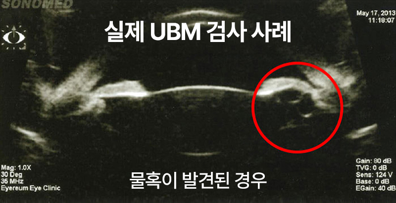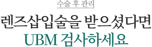 아이리움안과에서 렌즈삽입수술을 받으시는 분들께 가장 많이 강조하는 내용이 바로 수술 후 UBM 검사입니다. UBM은 안구의 전, 후부를 면밀히 측정할 수 있기 때문에 수술 전뿐만 아니라 수술 후 렌즈의 상태까지 확인할 수 있습니다.