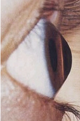 - 각막의 원추기저부에 담갈색의 플레이셔라는 색소륜 발생