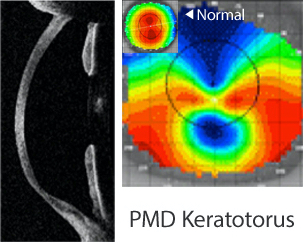 PMD Keratotorus는 종종 원추각막(Keratoconus)과