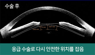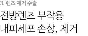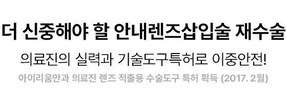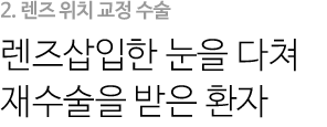 ▲ 렌즈삽입술 재수술이 필요한 경우: 수술 후 불가피한 이유로 안내렌즈를 교체 또는 제거해야 하는 경우 렌즈 제거술을 시행합니다.
