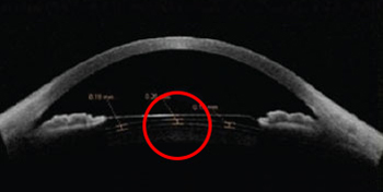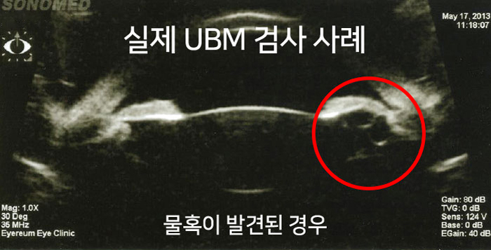 ▲ UBM 검사를 통해 물혹이 발견되어 렌즈삽입수술을 받을 수 없었던 사례