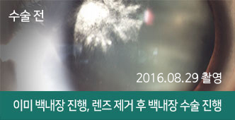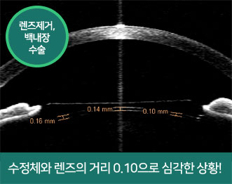 ICL 수술 후 렌즈와 수정체 사이의 거리(Vaulting)가 좁아 백내장 진행된 사례. 후방렌즈 ICL을 제거하고 백내장 수술 진행