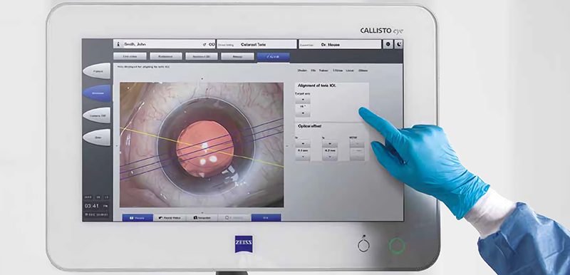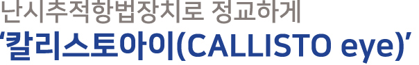 난시추적항법장치 ‘칼리스토아이(CALLISTO eye)’는 난시교정에 필요한 정확한 수술 부위를 표시, 수술에 필요한 가이드라인을 실시간으로 제공합니다. 이는 운전 시 정확한 길을 찾기 위해 내비게이터/GPS를 활용하는 것과 같은 방식으로 난시교정 결과 향상에 도움을 줍니다.