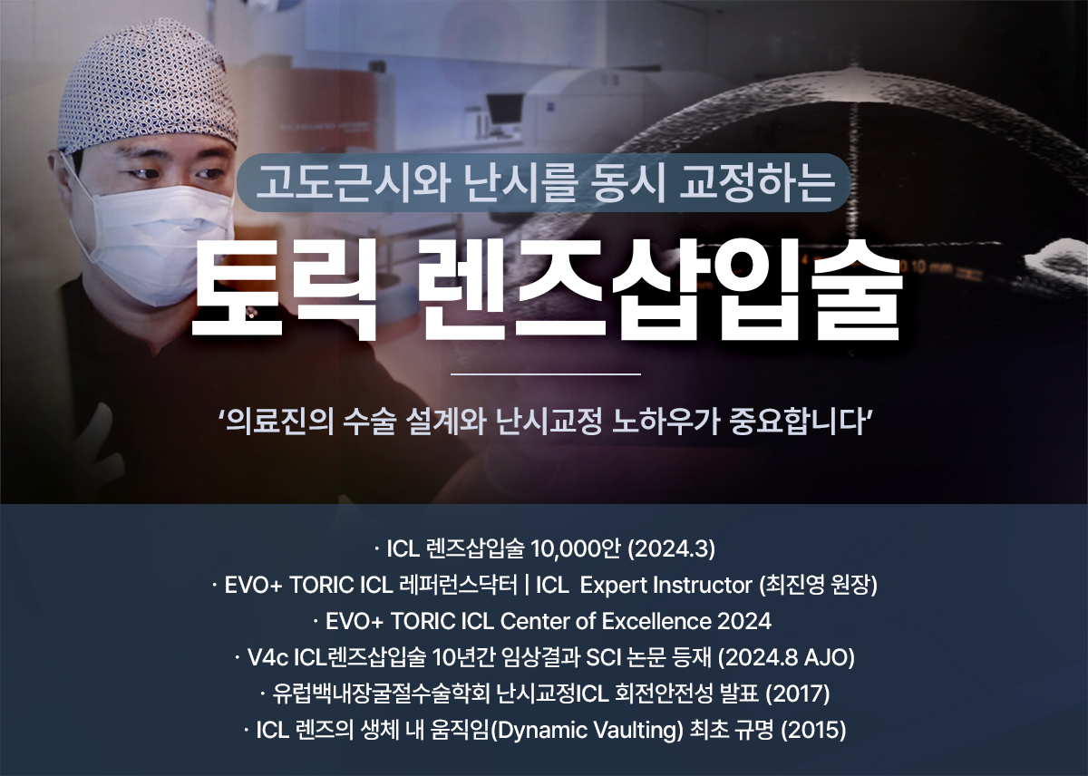 렌즈삽입술은 특히 의료진의 1:1 맞춤 수술 설계와 수술 노하우가 중요한 수술입니다.