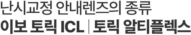안내렌즈삽입술은 각막을 절제하는 과정이 없이 시력교정용 렌즈를 눈 안에 삽입하여 시력을 교정하는 수술입니다. 근시와 난시 동시 교정이 가능하며 경도수부터 초고도수까지 시력교정 범위가 넓습니다.