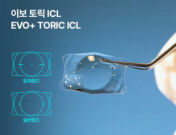 이보 토릭 ICL(EVO+ TORIC ICL)은 근∙난시를 동시에 교정할 수 있는 EVO+ ICL 계열의 안내렌즈입니다. 홍채와 수정체 사이에 위치하며(후방렌즈), 특허받은 콜라머 재질과 생체 친화적인 설계로 렌즈삽입술의 안전성을 높입니다. 가장 까다로운 미국 FDA 임상기준을 통과한 유일한 후방렌즈입니다.