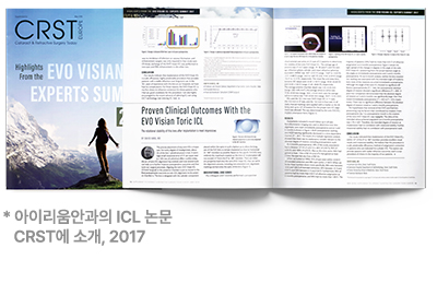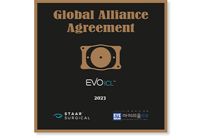 아이리움안과는 EVO ICL의 제조사인 STAAR SURGICAL와 전략적 제휴협약을 체결한 의료기관으로서 EVO ICL 렌즈의 개발, 수술 안전성 향상을 위한 의학자문을 하고 있습니다.