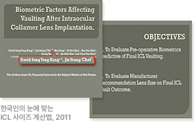 2011년 ‘한국인의 눈에 맞는 ICL 사이즈 계산법’ 발표 - 개인의 눈에 맞는 렌즈 사이즈 선택의 중요성을 학계 처음 제시