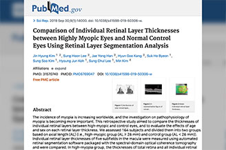 Comparison of Individual Retinal Layer Thicknesses between Highly Myopic Eyes and Normal Control Eyes Using Retinal Layer Segmentation Analysis. Sci Rep. Sep 2019 30;9(1):14000, doi: 10.1038/s41598-019-50306-w
