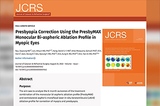 Presbyopia Correction Using the PresbyMAX Monocular Bi-aspheric Ablation Profile in Myopic Eyes. JCRS. Aug 23, 2022, doi: 10.1097/j.jcrs.0000000000001042