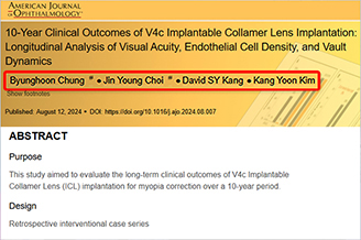 10-Year Clinical Outcomes of V4c Implantable Collamer Lens Implantation: Longitudinal Analysis of Visual Acuity, Endothelial Cell Density, and Vault Dynamics. AJO. Aug 12, 2024, doi: 10.1016/j.ajo.2024.08.007