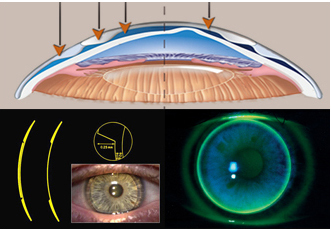 RGP (Rigid Gas Permeable) contact lenses mask the underlying irregular cornea and function as a new refractive surface of the eye. They are custom-made for each patient in order to correct vision. There are other contact lenses for keratoconus; however, if vision cannot be corrected with contact lenses, cornea transplant is the last resort.