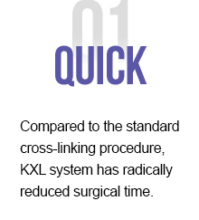 - 02 The cornea is illuminated with 45mW/㎠ ultra violet light for 90 seconds using the KXL system.