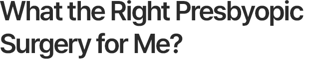 There are many factors to consider when deciding on presbyopic surgery, such as the patient’s age, eye condition (cornea thickness, shape, etc), overall physical health, cataract, glaucoma, other personal diseases, and the ability to adapt after surgery.