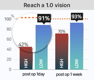 After a standard SMILE LASIK, patients usually complain about 2~3 weeks of continual vision opacity and a slow recovery. However, with Low Energy ReLEx SMILE, 91% of patients are amazed at achieving a 20/20 vision the following day.